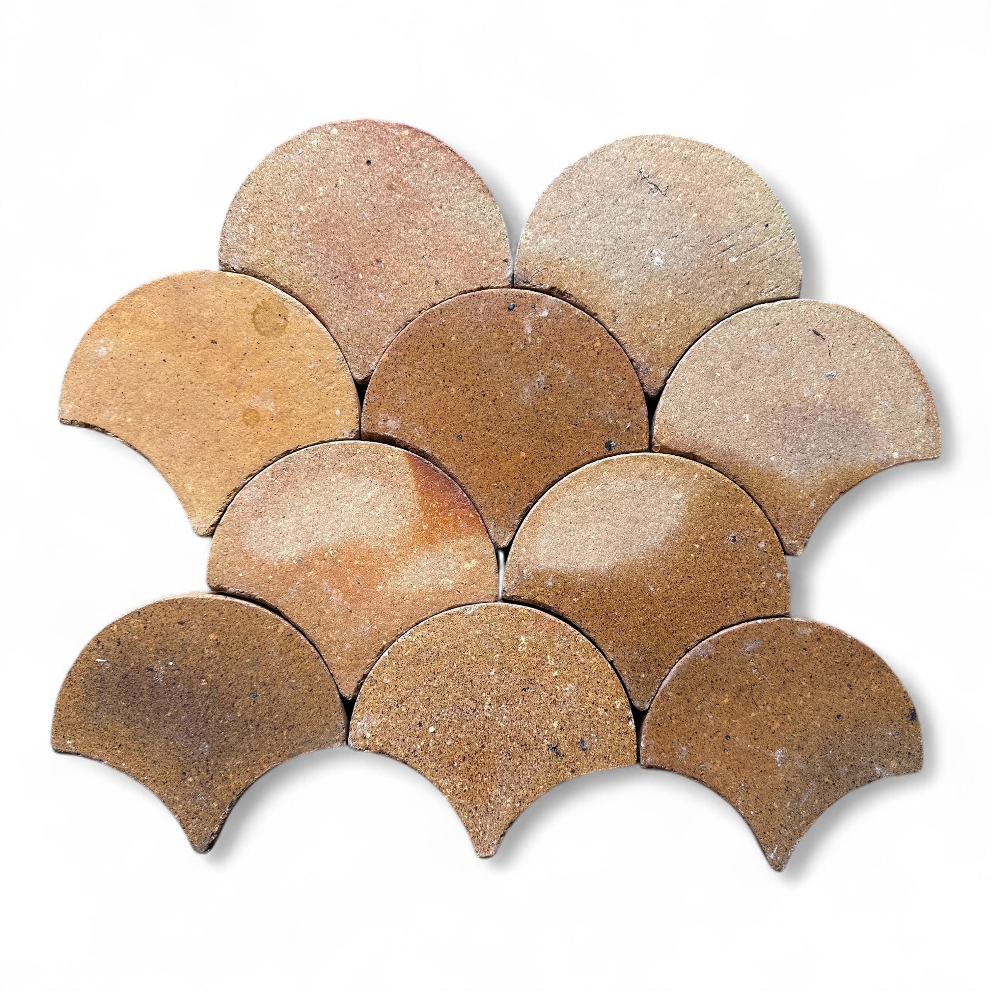 Fishscale shape with raw color from the earth. Wood fired with natural color variations.